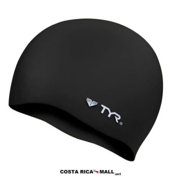 Gorra de natación TYR de silicona negra, antideslizante y sin arrugas. Envíos a toda Costa Rica. Ideal para adultos que buscan rendimiento y protección en el agua.